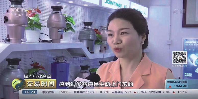 2019.8.12 CCTV财经频道董事长南子女士受邀央视财经频道采 访与讲解中国食物垃圾处理器市场布 局及行业发展前景。