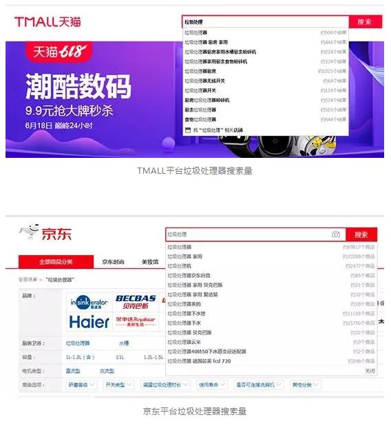 现如今,垃圾处理器行业品牌持续猛增,从Tmall、京东、苏宁易购等电商平台搜索,我们不难发现,近几年垃圾处理器商品及品牌搜索的数量正在迅猛增长: