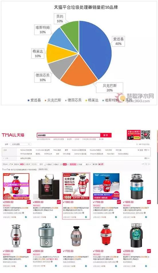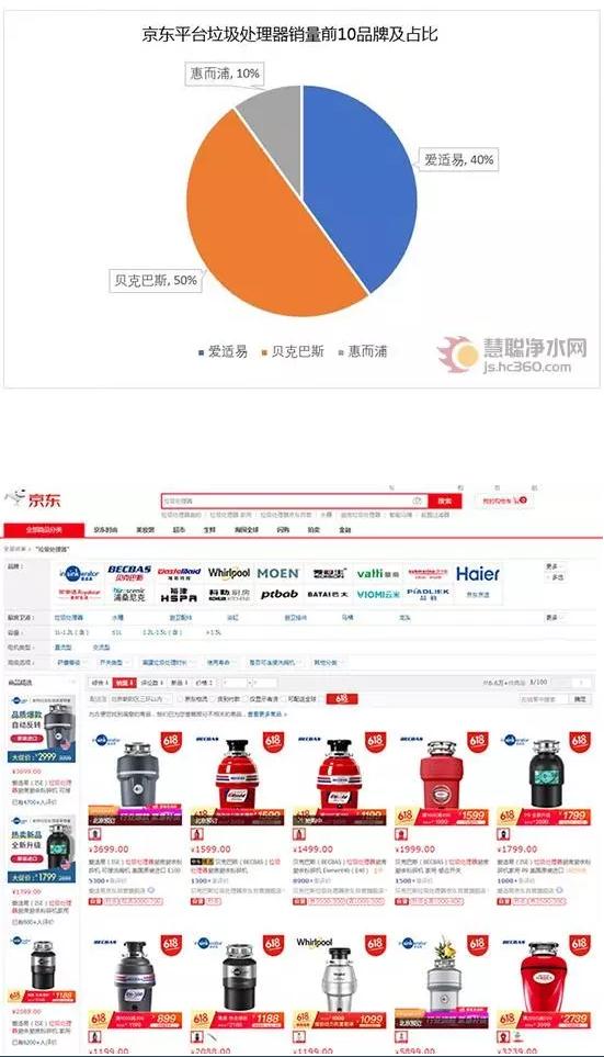 根据TMALL、京东、苏宁易购电商平台月销量数据对比显示,我们发现,贝克巴斯、爱适易、唯斯特姆品牌占据垃圾处理器线上市场的半壁江山。