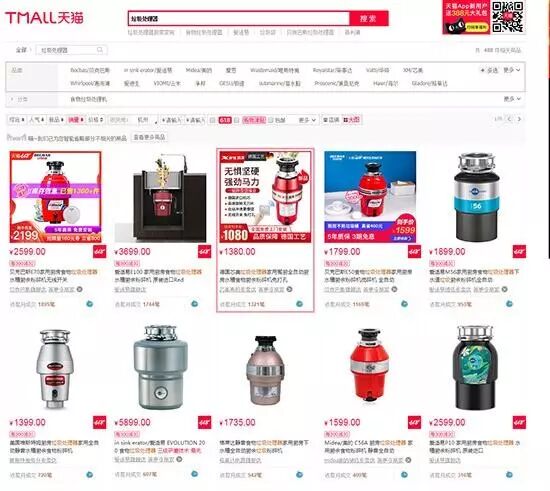 TMALL入驻垃圾处理器品牌有:106余家,入驻商品1000多款。