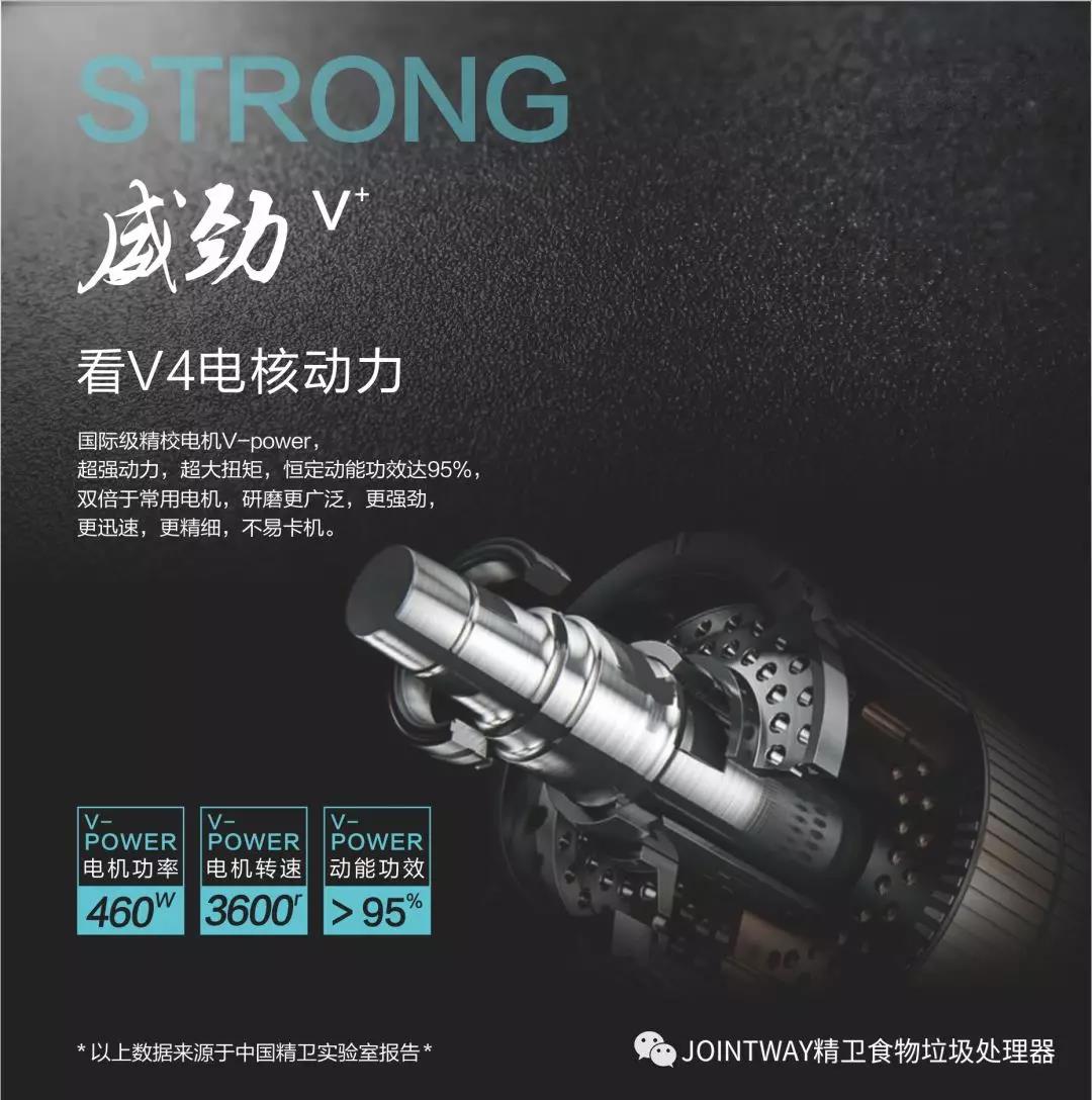 第4代研磨技术V-grinding,无惧软硬,能吞食高钙化、高纤维、高弹力等湿垃圾,研磨+切割的双重效果,研磨成颗粒粉(研磨颗粒粉约2mm),冲水成浆,螺旋冲刷强劲排走,下水通畅。